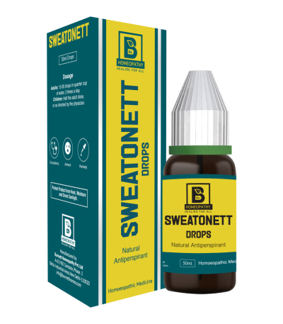 SWEATONETT DROPS is an excellent combination of medicines that acts as a natural antiperspirant for undue perspiration, climacteric flushing with sweat, excessive perspiration during acute infectious diseases, fever, unpleasant smell, staining over clothes, nocturnal perspiration with exhaustion, hot, cold or sticky sweat.