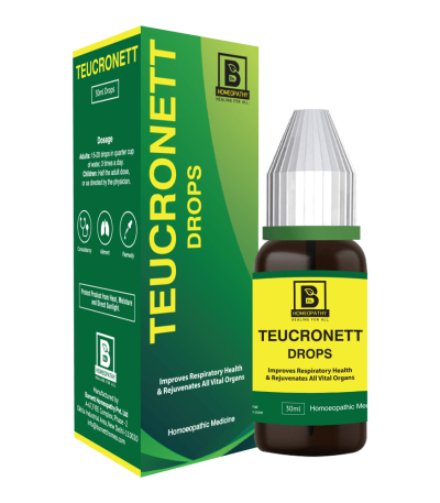 TEUCRONETT DROPS is a perfect combination of medicines that acts well on the immune system of the body to improve respiratory health, weakness of the parenchymatous organs, especially lungs & rejuvenates all vital organs. Nocturnal perspiration, sensitivity to cold, paleness of face, loss of vital fluids, weakness of back, disturbances of blood circulation of the respiratory organs & tendency to produce catarrhal infections.