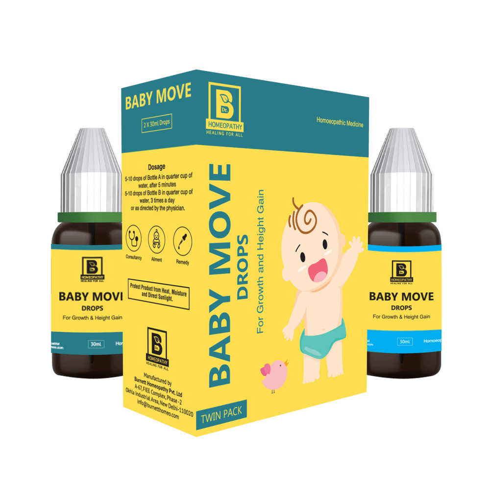 BABY MOVE DROPS is an excellent combo for Baby and infants, helpful in all sorts of sufferings of children such as delayed milestones, walking difficulty & improper digestion. Improper growth at physical as well as mental level, Weak memory, dentition problems, idiocy, nutritive problems in children.