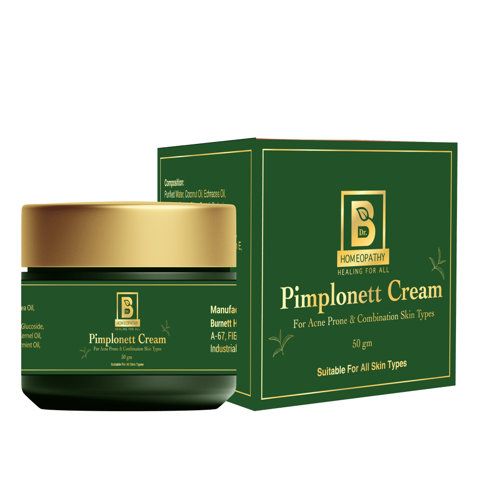 Pimplonett cream is recommended for treating pimples(acne), blackheads, pitting, scarring on the face and unhealthy skin. It is the best acne treatment to shrink pores, lighten the skin, remove pimples and blackheads. It minimises oil and sebum produc-tion and helps to reduce inflammation and redness. It also kills acne-causing micro-or-ganisms and prevents infections. It is beneficial for dry or damaged skin as it greatly heals, moisturises and softens the skin.